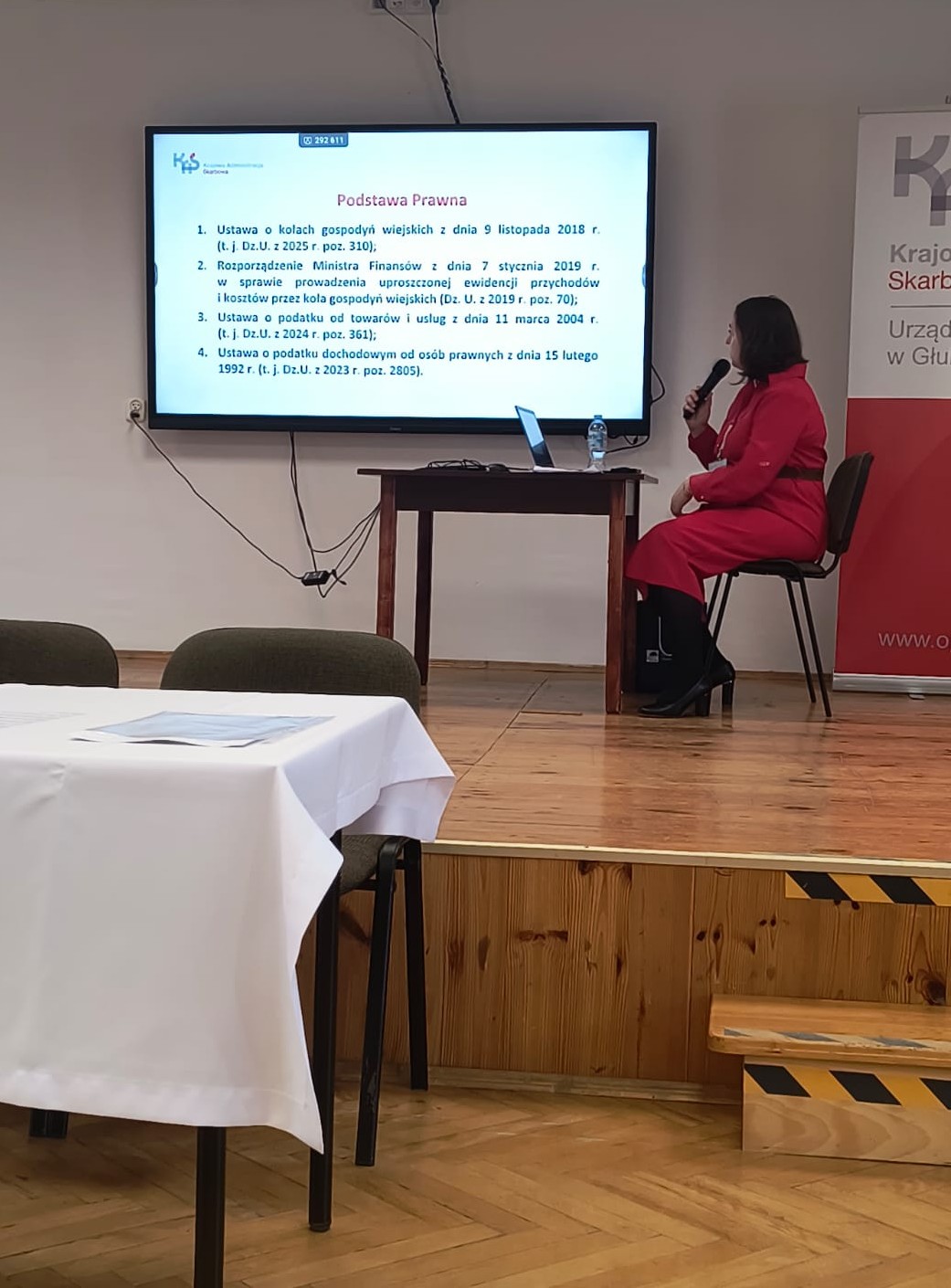 - Przedstawiciele Urzędu Skarbowego w Głubczycach zaprezentowali temat ewidencji przychodów i rozchodów oraz obowiązków podatkowych KGW,