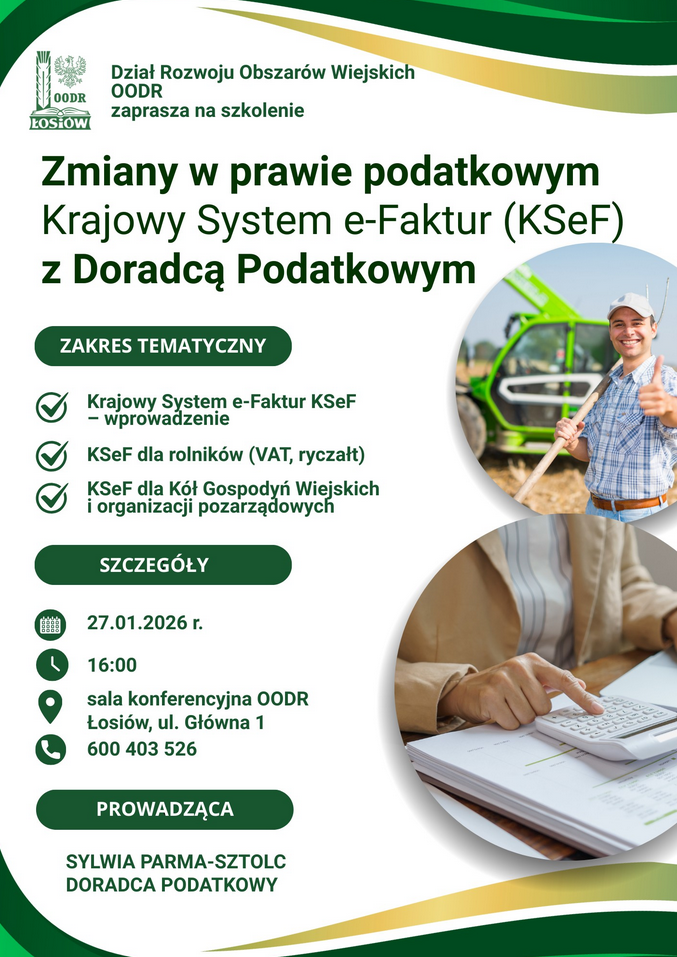 Szkolenie „KSeF w rolnictwie i organizacjach pozarządowych”