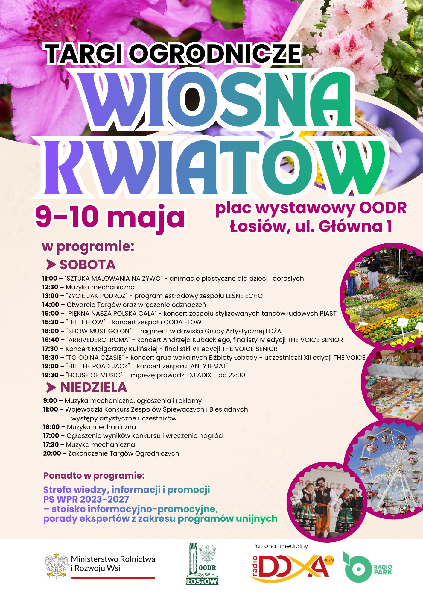 Już 9–10 maja zapraszamy na Targi Ogrodnicze „Wiosna Kwiatów” na plac wystawowy Opolskiego Ośrodka Doradztwa Rolniczego w Łosiowie (ul. Główna 1). To dwa dni pełne kwiatów, ogrodniczych inspiracji i atrakcji dla całych rodzin!