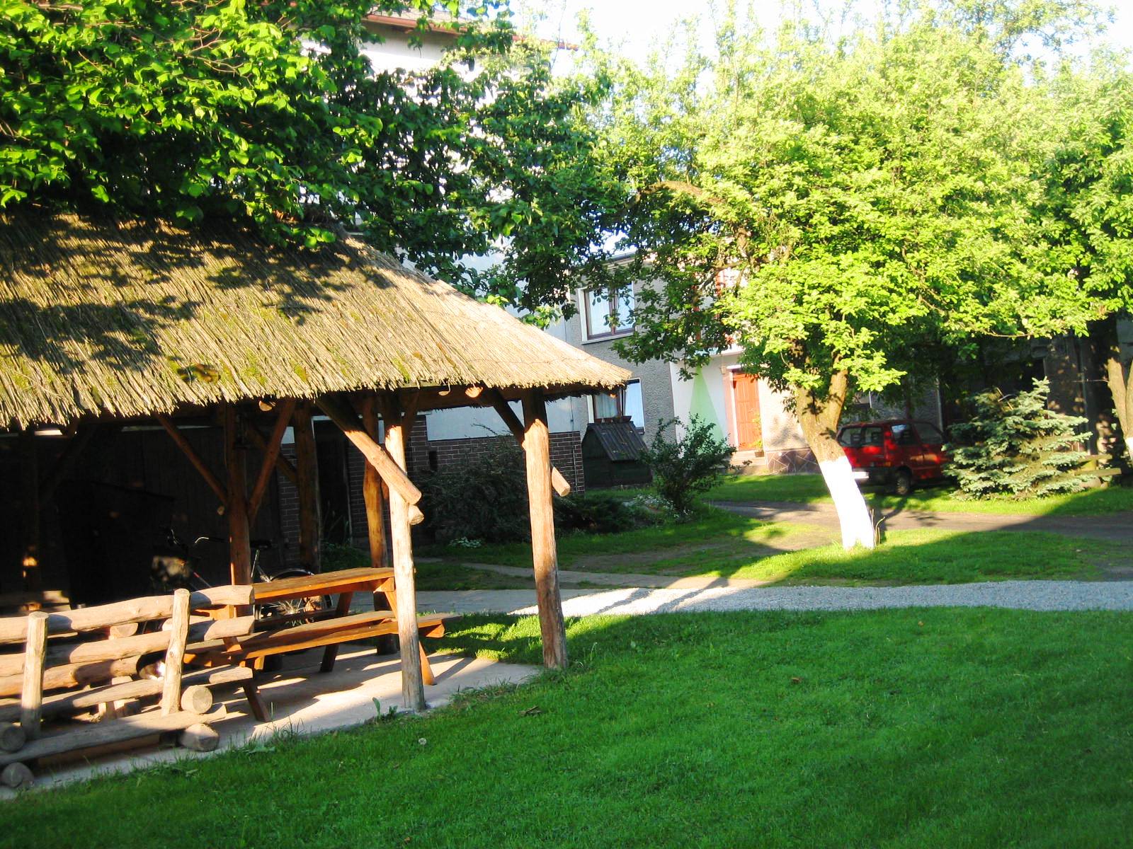 Dla gości posiadamy osobny dom z 5 pokojami z 4 łazienkami, w pełni wyposażony aneks kuchenny, świetlica z bilardem oraz chatę zbójnicką z kominkiem. W gospodarstwie uprawiamy zboża i zajmujemy się hodowlą koni, świń i byków.