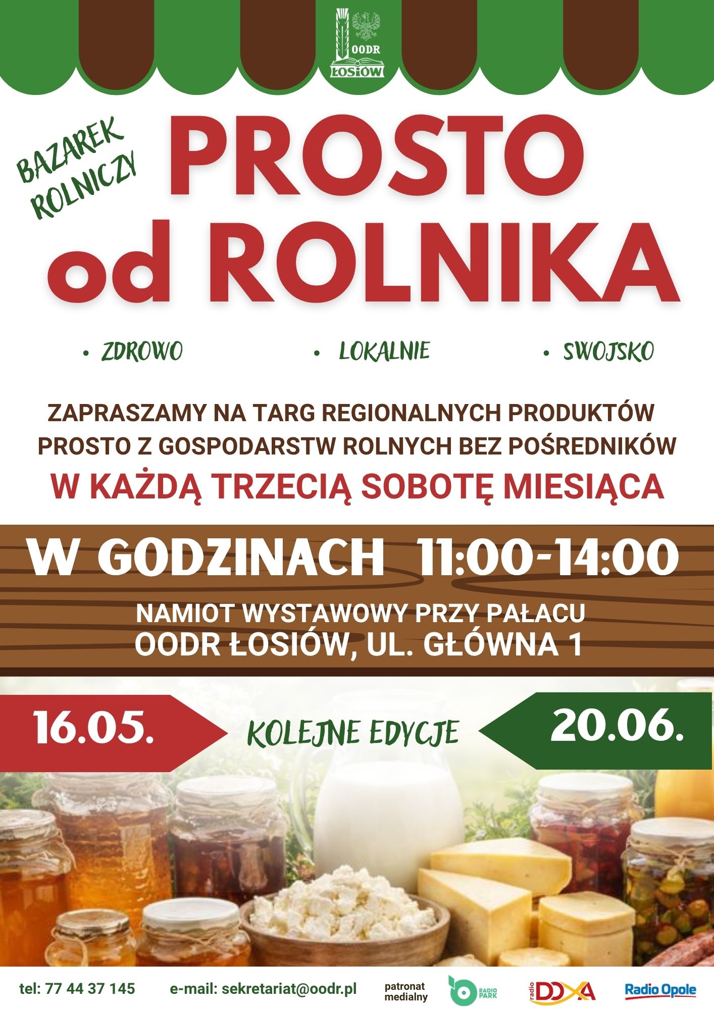 W każdą trzecią sobotę miesiąca na terenie OODR w Łosiowie – w namiocie wystawowym przy pałacu, będziecie Państwo mieli okazję kupić produkty bezpośrednio od producentów, bez pośredników, z gwarancją jakości i prawdziwego pochodzenia.
