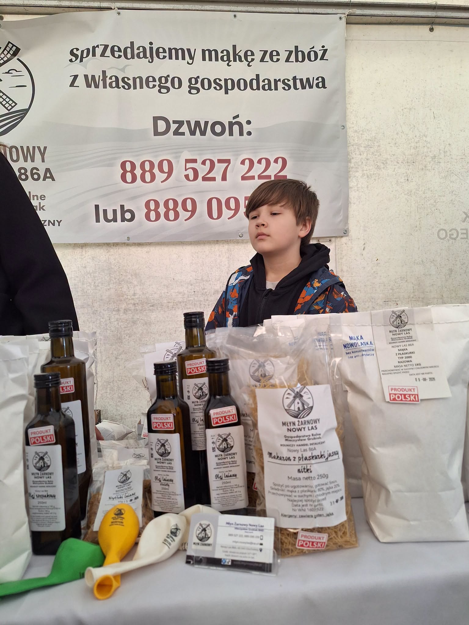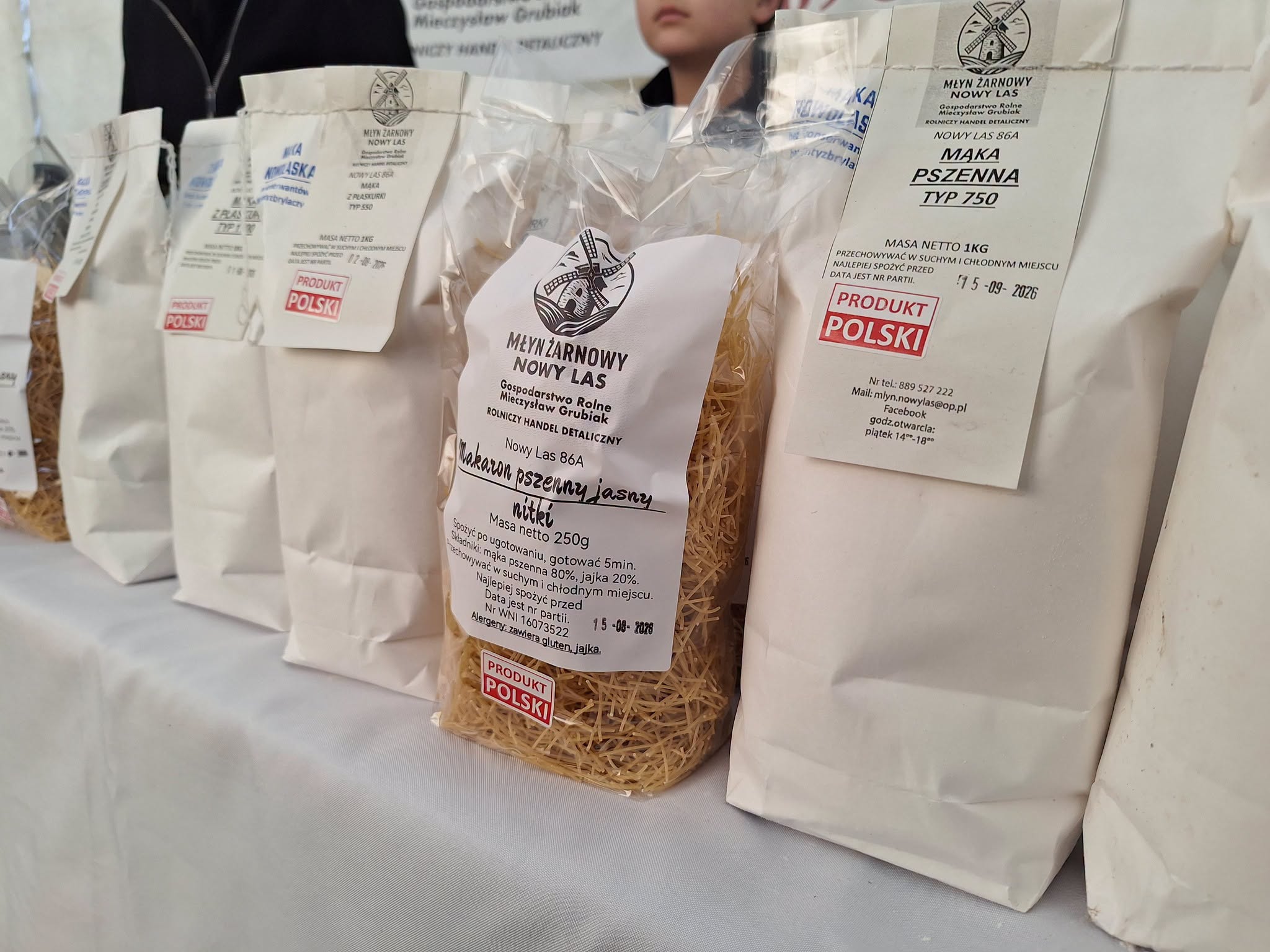 Na stoiskach dostępne były również świeże warzywa, ziemniaki, jajka, orzechy włoskie, makarony oraz różnego rodzaju mąki – idealne do domowych wypieków i codziennego gotowania.